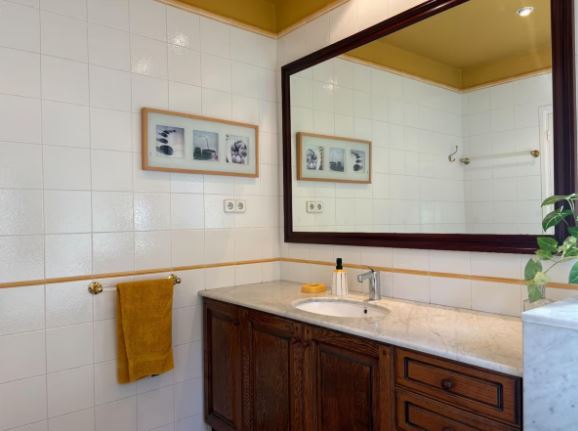 أسقف عالية مزينة بزخارف يدوية الصنع. إطارات نوافذ من الألومنيوم بزجاج مزدوج وعزل حراري.
