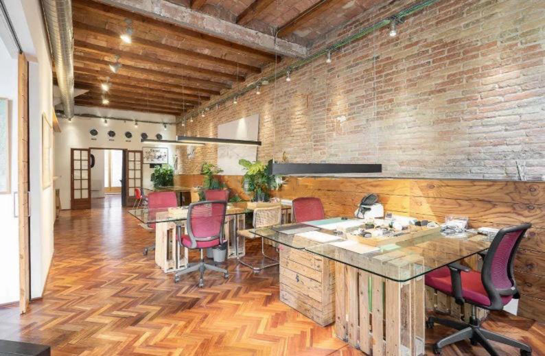 - Sostres alts amb volta catalana i bigues de fusta.