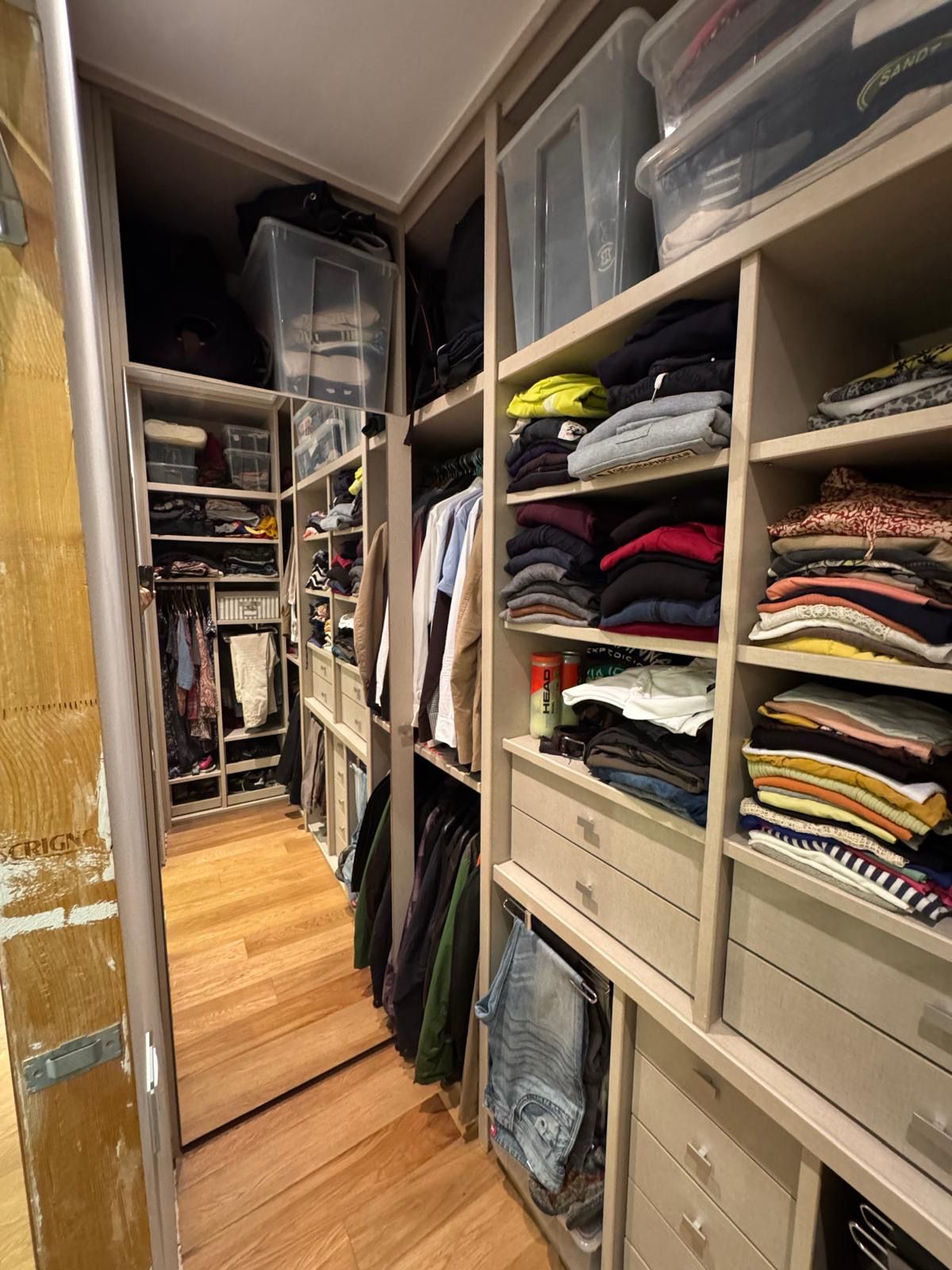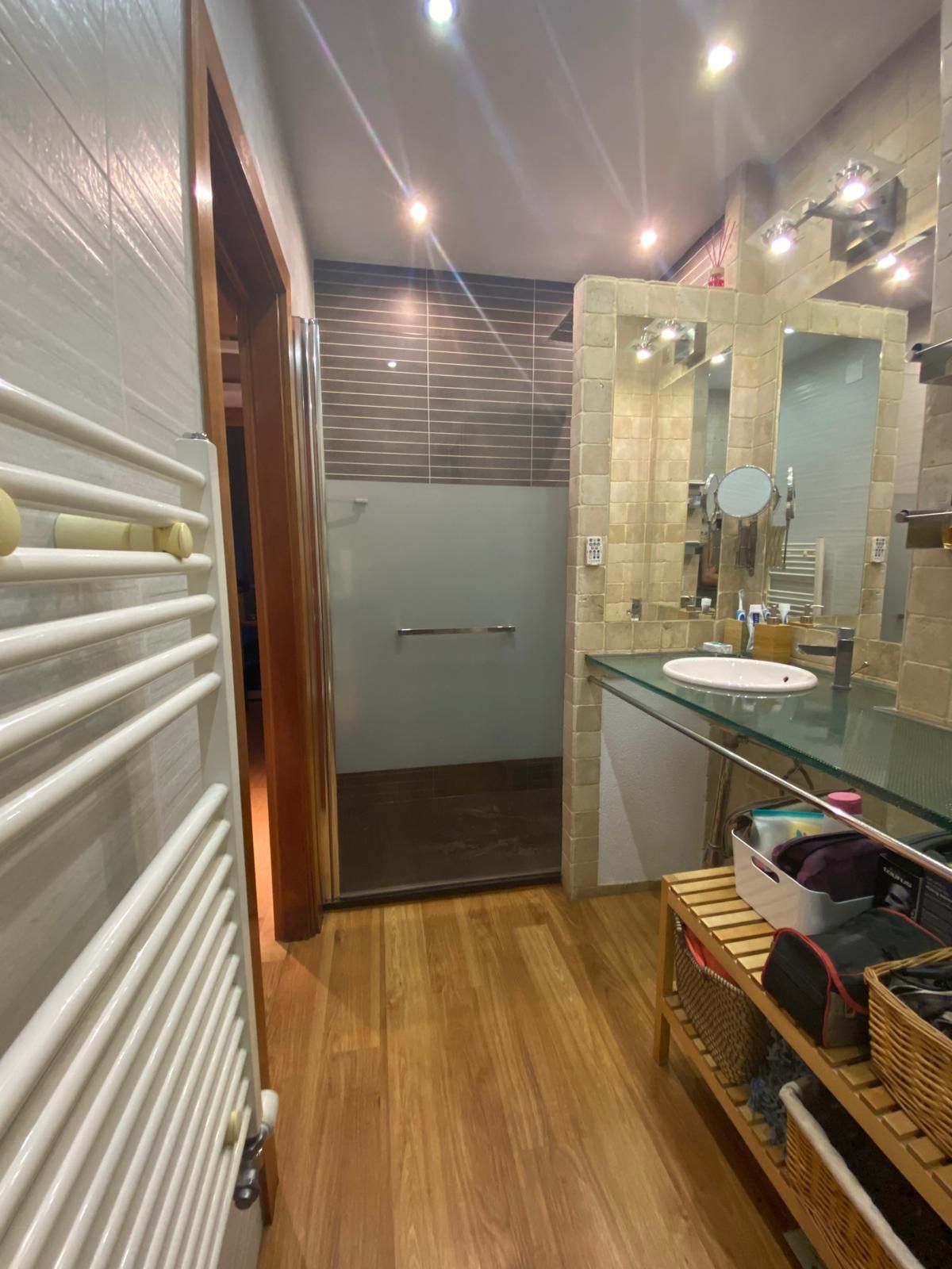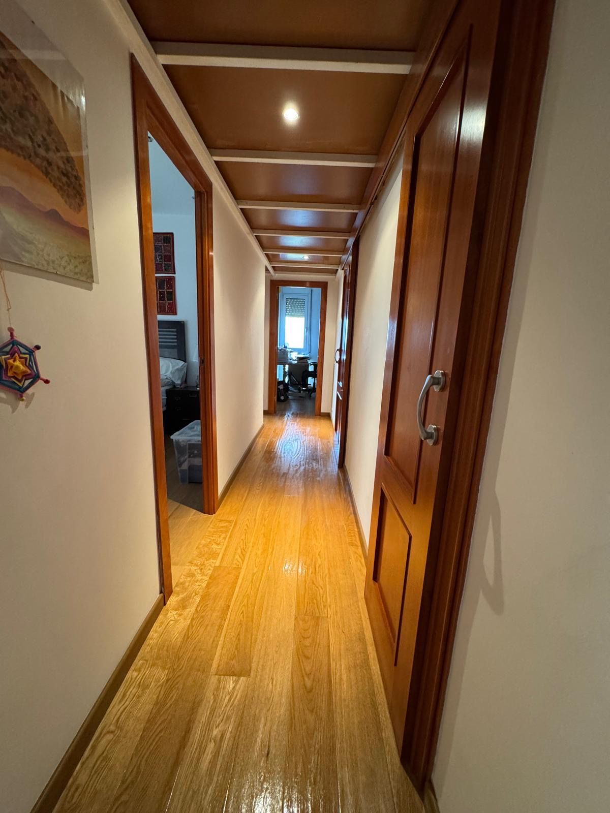 Natural wood parquet and sliding doors to optimize space.