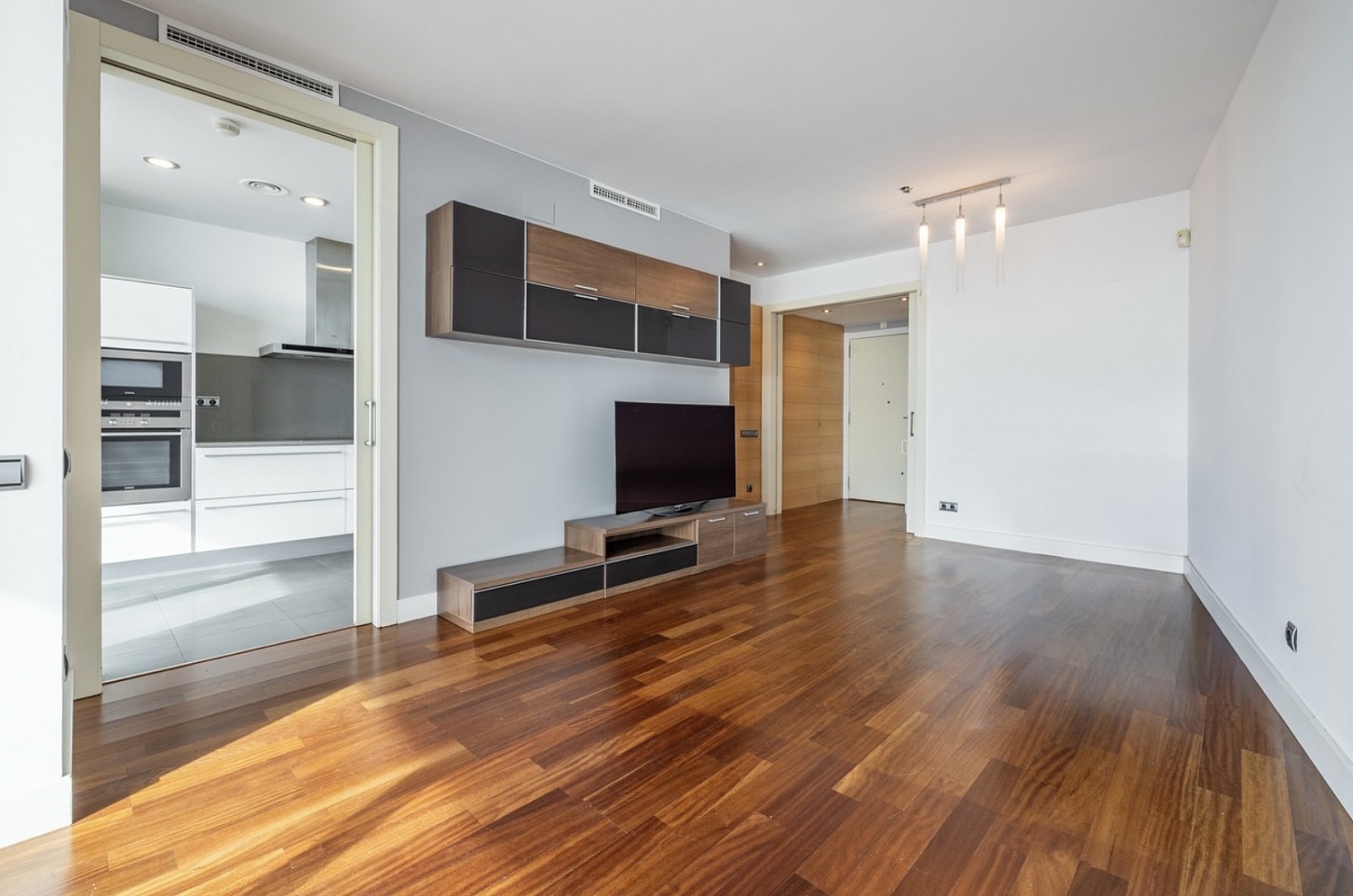 The property offers 105 sqm built, two bedrooms and one bathroom, with a comfortable and functional layout, ideal as a primary residence or luxury second home in Barcelona. It is in excellent condition and ready to move in. It features a fully equipped kitchen, solid wood flooring, built-in wardrobes, aluminum exterior carpentry with double glazing, air conditioning (hot and cold), central heating, and a security system, ensuring comfort and quality in every detail.