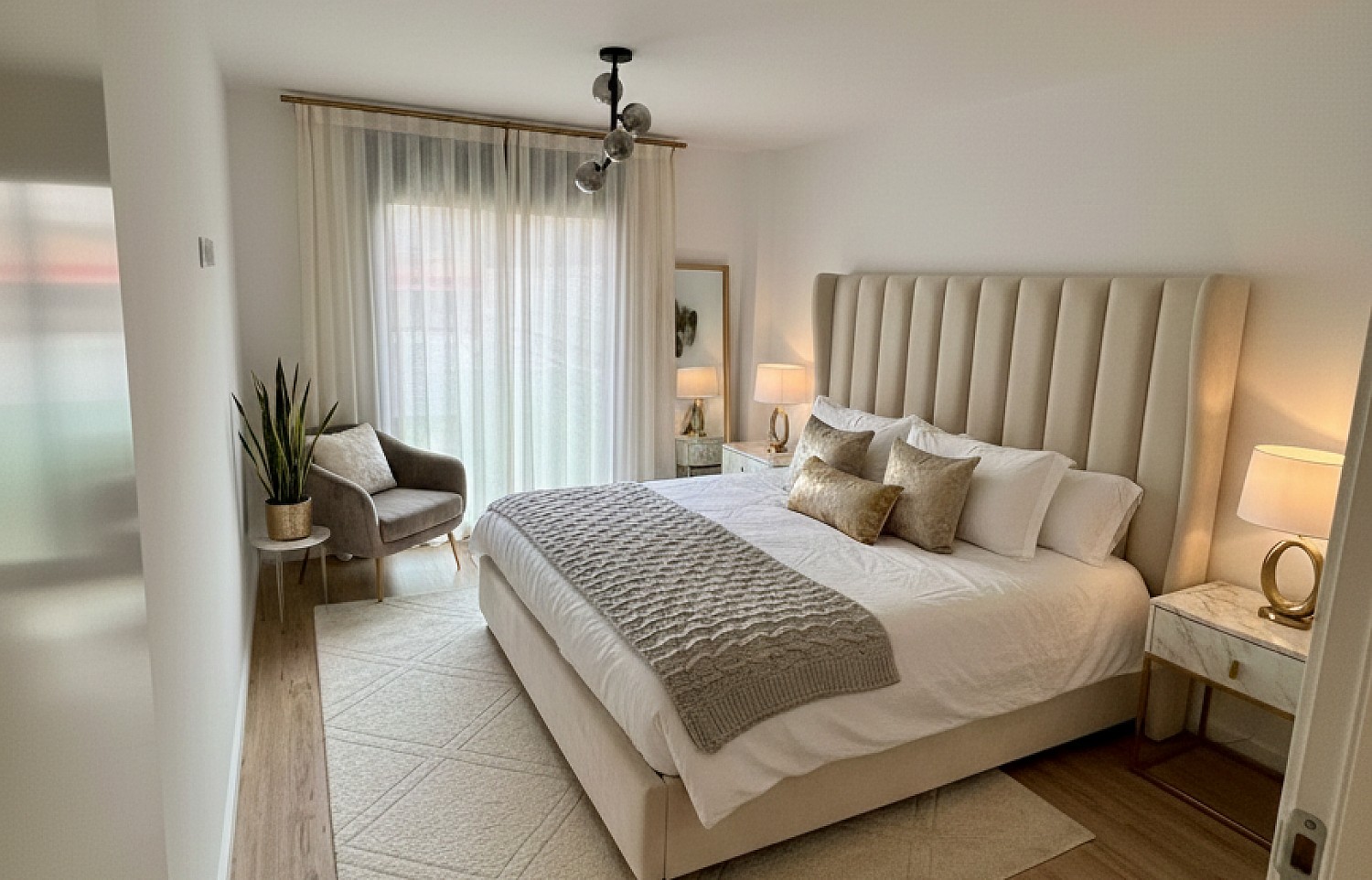۲ اتاق خواب، شامل یک سوئیت مستر با حمام اختصاصی، هر دو دارای کمد دیواری سفارشی