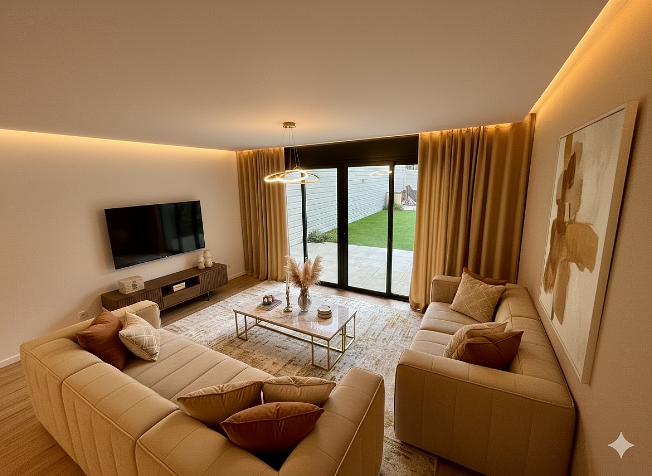 اتاق نشیمن و غذاخوری با دسترسی مستقیم به باغ