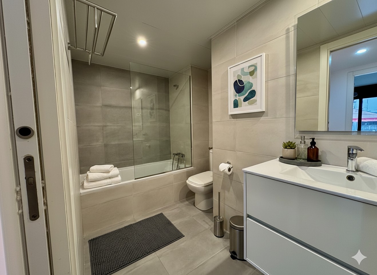 این خانه دوبلکس دیدنی در محله سانتس بارسلونا، در خیابانی آرام و بدون همسایه روبرو، واقع شده است و حریم خصوصی و راحتی را ارائه میدهد و تنها چند دقیقه با تمام خدمات شهری، مغازهها، حمل و نقل عمومی و مناطق سبز فاصله دارد.