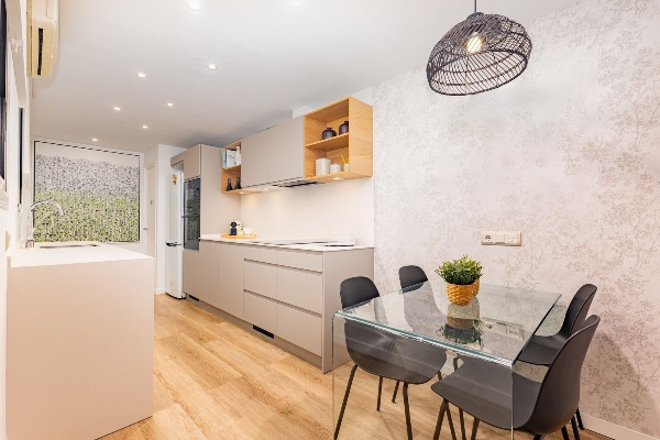Cuisine indépendante avec coin repas, entièrement équipée avec des appareils Bosch de dernière génération
