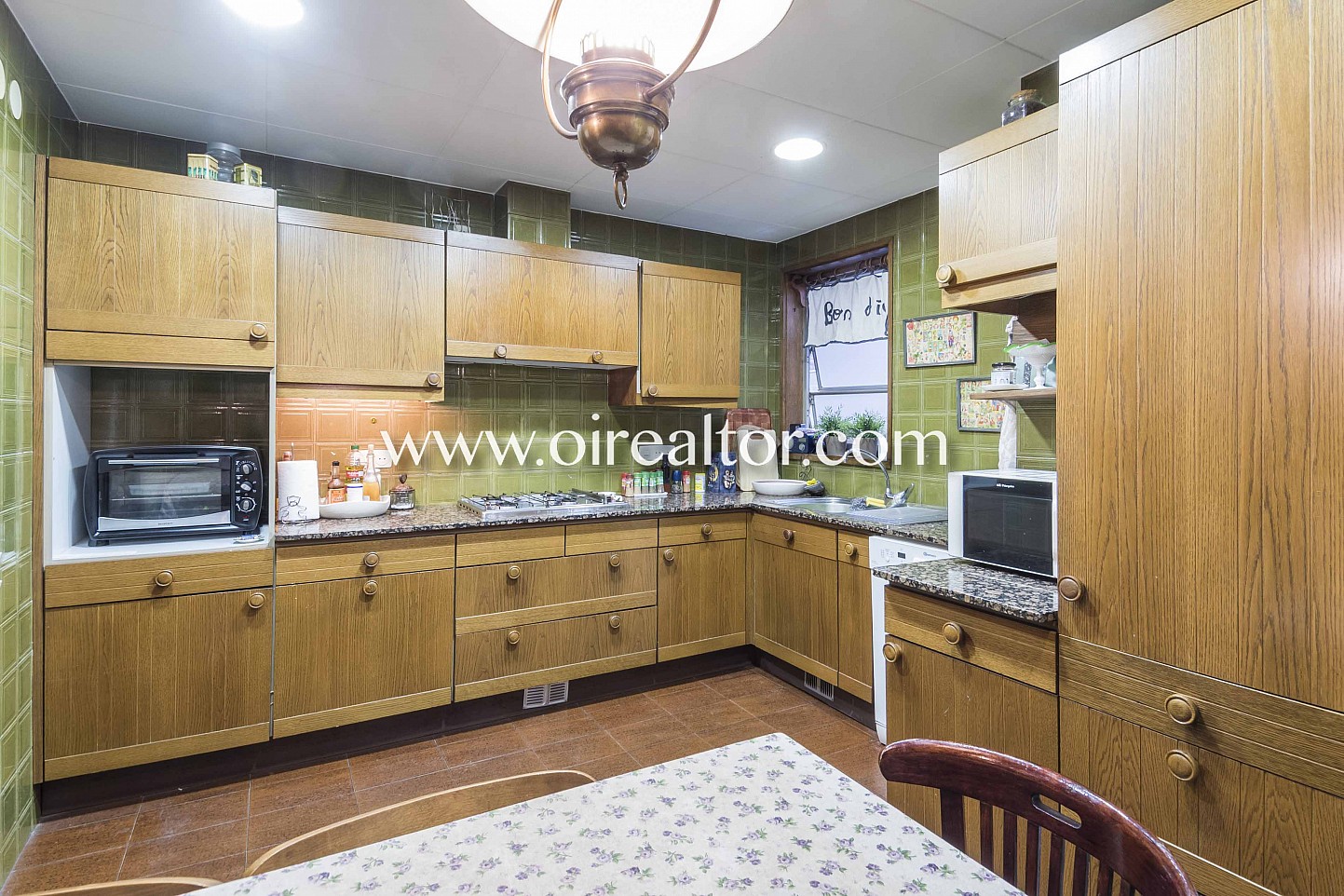 La vivienda, de 143m2, dispone de tres habitaciones dobles y una individual, dos baños, un aseo, un amplio comedor, cocina independiente equipada, además de una soleada terraza de 12m2 que da al patio de la manzana. Los suelos son de gres y las carpinterías interiores y exteriores de madera.