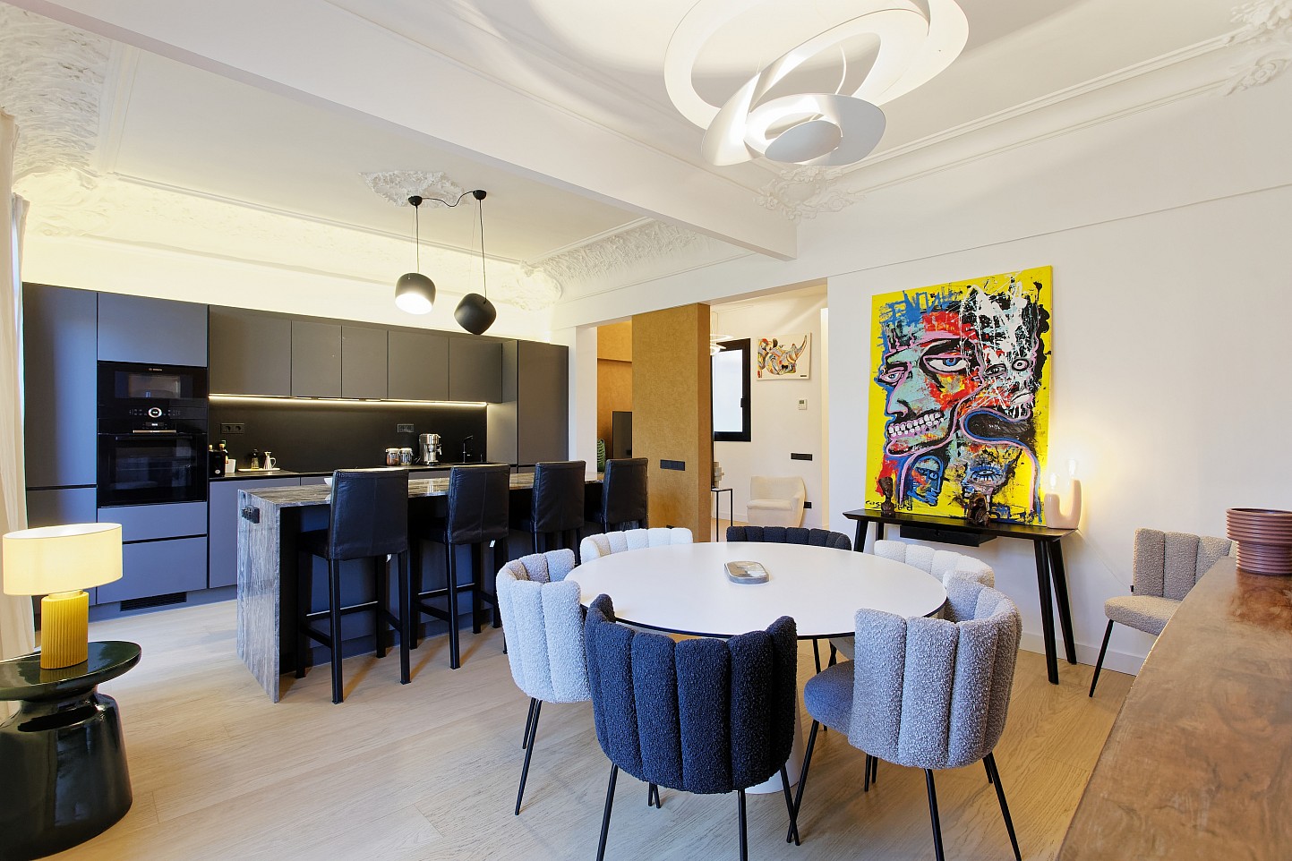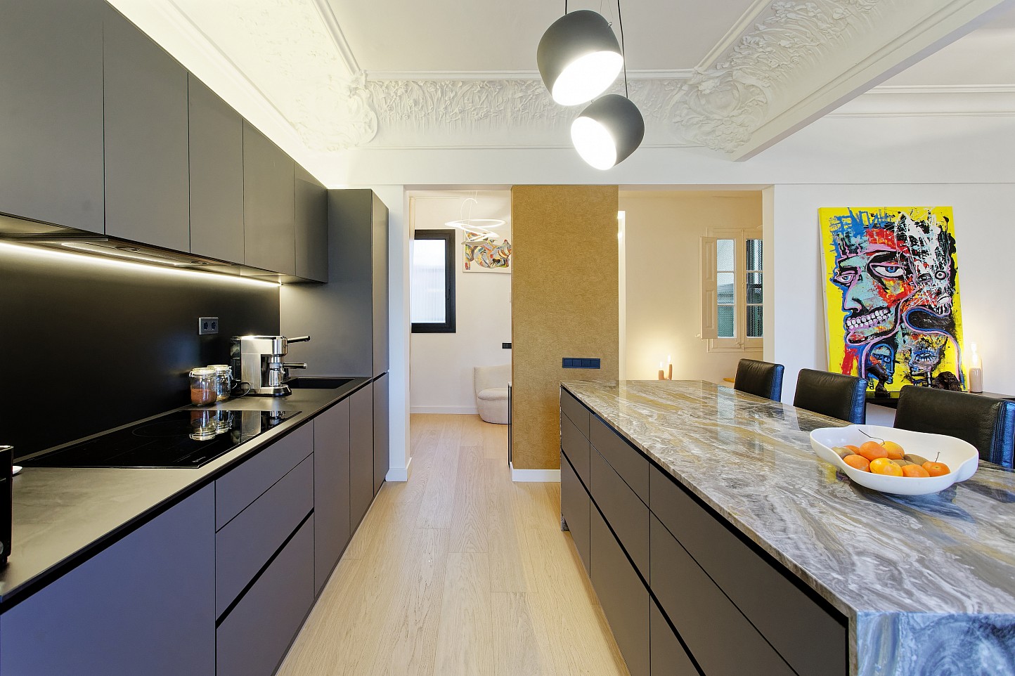 Ubicado en el corazón de Barcelona junto a Plaza Universidad, este piso de 132 m² destaca por ocupar una planta completa, ofreciendo privacidad y espacios amplios. Lo especial de esta vivienda es su distribución mágica con cocina de concepto abierto, una inmensa isla y acabados de alta gama. Además, cuenta con una terraza comunitaria en la parte superior del edificio con vistas increíbles a toda la ciudad. Es una pieza única que combina lujo, luminosidad y una ubicación inmejorable.