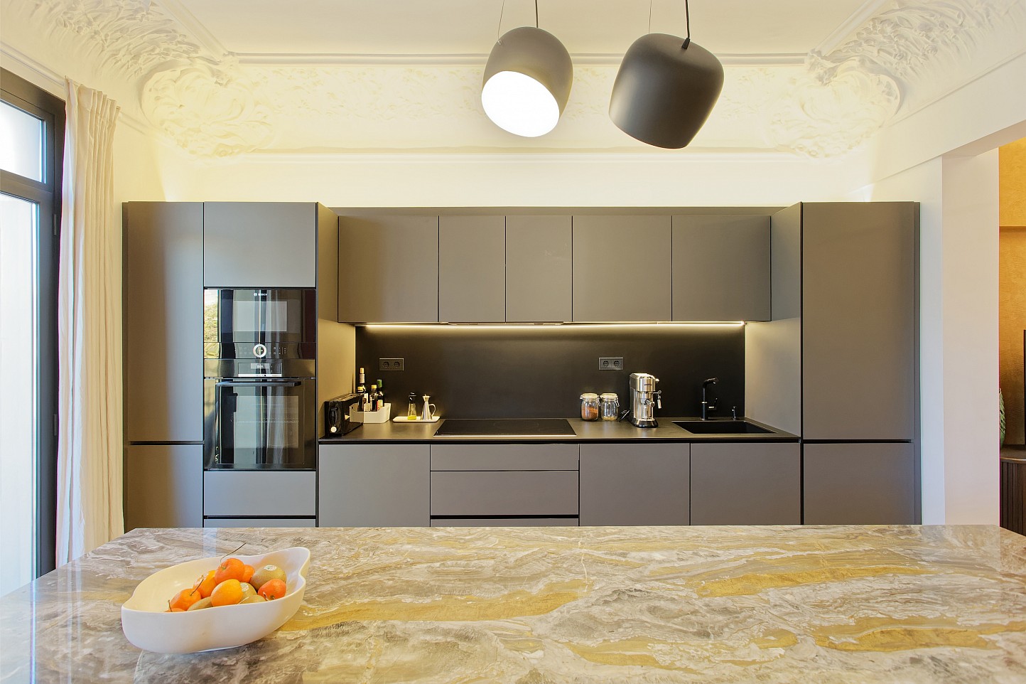- Cocina de alta gama con isla central y grifería Franke.