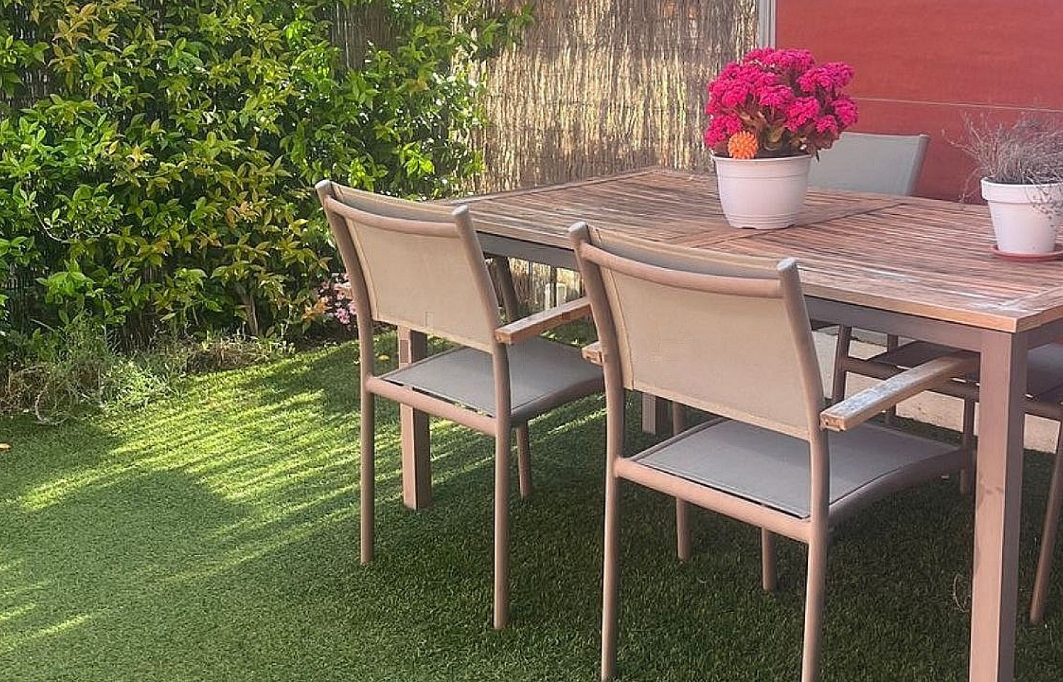Áreas exteriores: Terraza con vistas a la montaña y dos jardines (uno delantero y uno trasero con acceso a zona comunitaria).