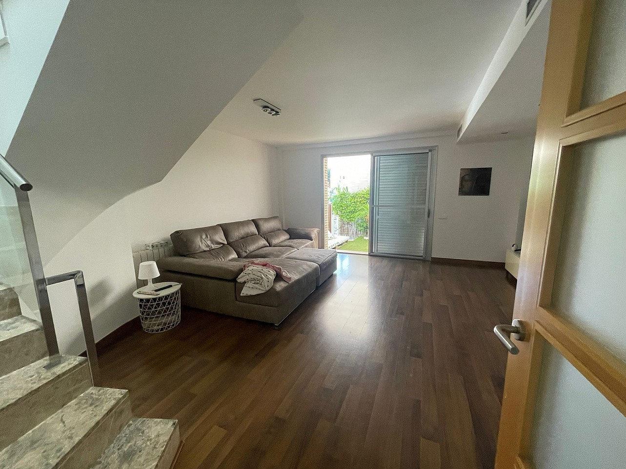 Planta inferior: Dispone de un garaje con capacidad para un coche y moto. Este espacio versátil ha sido acondicionado por los propietarios como un salón de juegos, aunque otros vecinos lo han adaptado como gimnasio. Adicionalmente, cuenta con una zona ideal para jugar al ping-pong y un trastero.