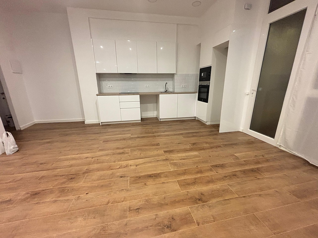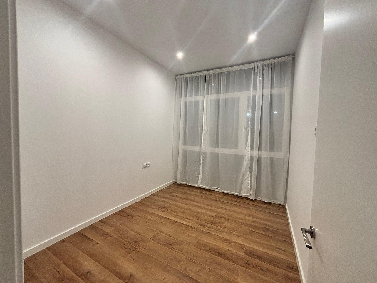 Puertas lacadas blancas, parquet y ventanas con aislamiento térmico y acústico.