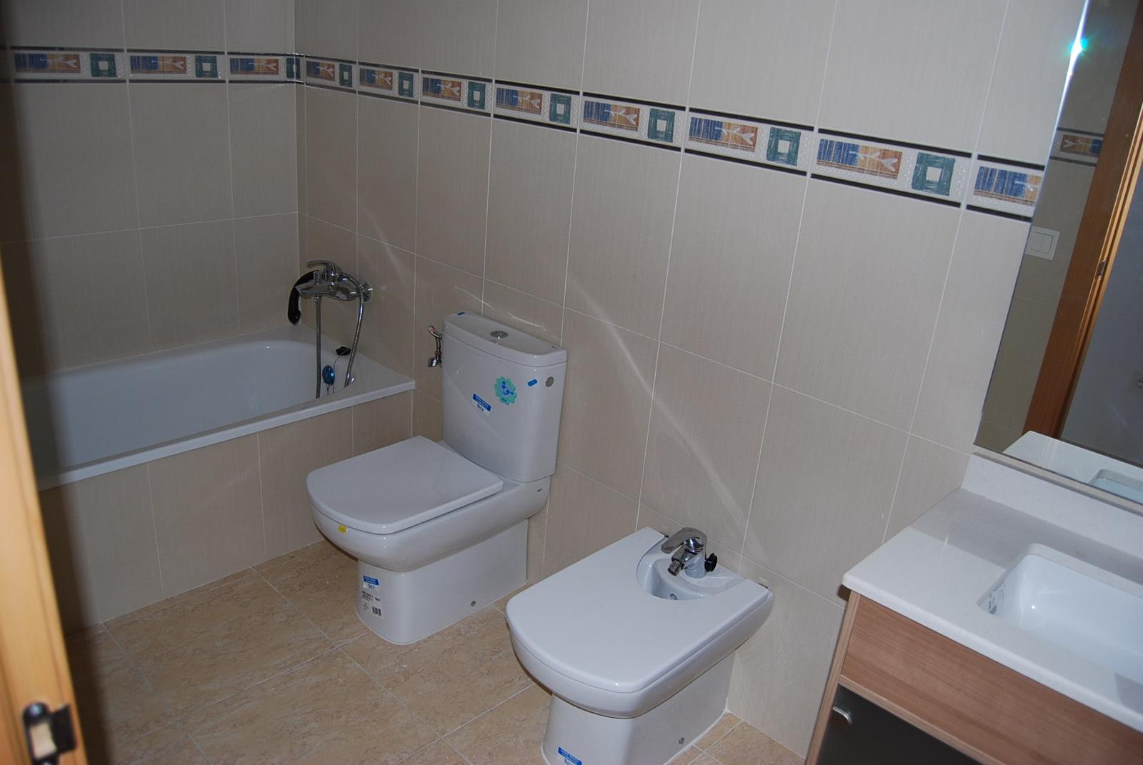 La zona de noche dispone de una habitación, que incluye un cómodo armario empotrado. Esta estancia, junto con el resto del apartamento, ofrece un ambiente tranquilo y funcional. Un baño completo da servicio a la vivienda, equipado con ducha, bañera, WC, bidé y lavabo.