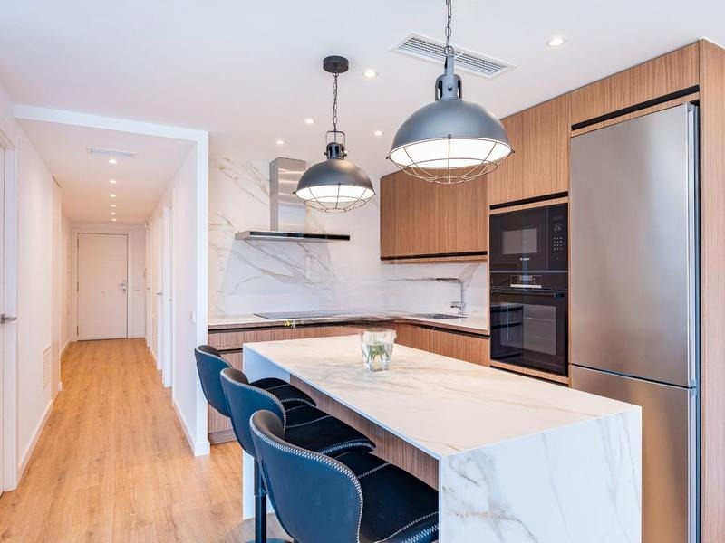 - Cozinha americana totalmente equipada com acabamentos novos.