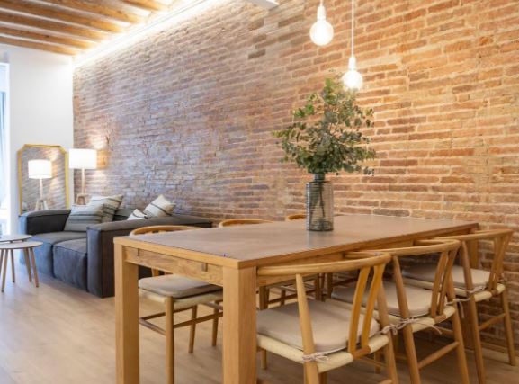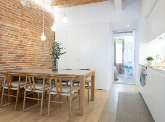 Reforma 2026: Máxima otimização do espaço, preservando elementos arquitetónicos originais — abóbada catalã, vigas de madeira expostas e paredes de tijolo burro — que conferem um caráter único e autêntico.