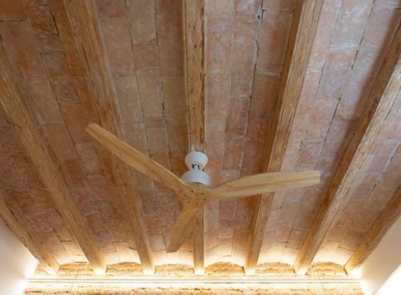 Caráter: Abóbada catalã (bóveda catalana), vigas à vista e tijolo original.
