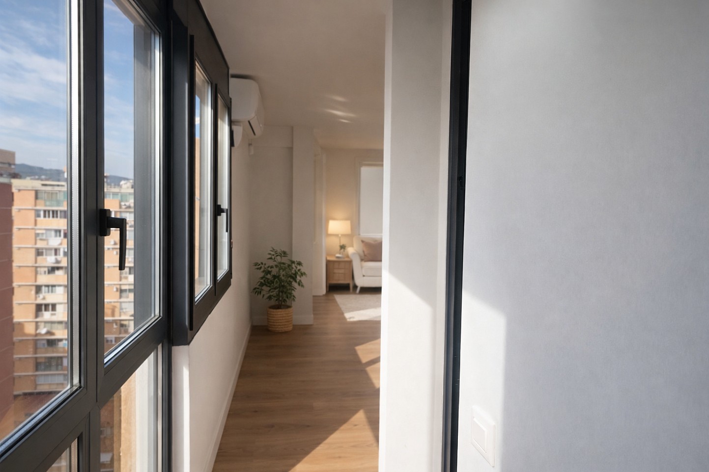 O apartamento dispõe de 60 m² muito bem distribuídos e destaca-se por ser muito luminoso graças à sua altura e à boa orientação. A partir da habitação é possível desfrutar de vistas abertas para a cidade, para a montanha e ainda de uma ligeira vista para o mar, o que transmite uma agradável sensação de amplitude e tranquilidade.