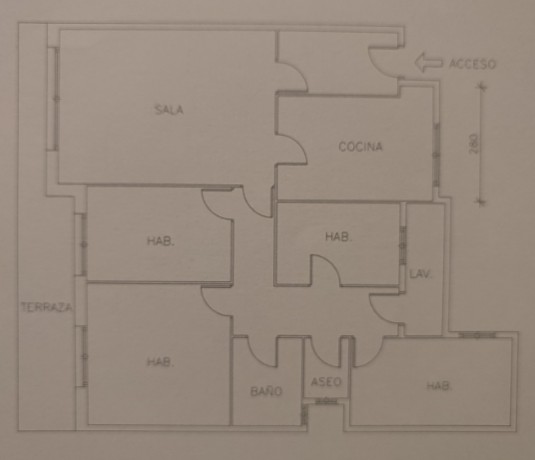 Квартира состоит из гостиной-столовой, отдельной кухни, прачечной, прихожей, коридора с антресолью, 4 спален (2 двойные), 1 ванной комнаты и 1 туалета, предлагая удобную и функциональную планировку.